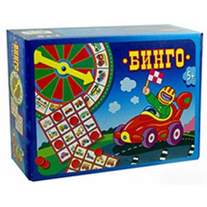 Бинго - популярная игра, разновидность лото, в которой ведущий, вращая стрелку, случайным образом выбирает изображение машинки, а игроки закрывают соответствующие клетки на своих карточках жетонами. Первый игрок, закрывший все картинки на одной вертикали, горизонтали или диагонали, выкрикивает 'Бинго!' и становится победителем.