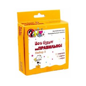 В набор входит 23 глагола. 20 глаголов представлены в трех формах, каждая форма на отдельной карте. 3 глагола представлены только в одной форме на одной карте, т.к. все три формы у этих глаголов совпадают. Наборы составлялись с учетом частоты использования глаголов в английском языке и лексики в рамках школьной программы.