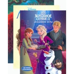 Волшебный мир Дисней - это край, где живут фантазии. Прекрасные Эльза и Анна, Моана и Мерида ждут встречи. Эти книги станут идеальным подарком к любому празднику. Каждая история подойдёт также и для самостоятельного чтения детьми. В них крупный шрифт и красочные картинки. Внутри есть тетради раскрасок, чтобы каждая девочка могла сделать волшебный мир таким, каким она его видит. В комплект входят книги:  Моана. Пуа и Хейхей, Холодное сердце II. Домашние игры, Храбрая сердцем. Любимые истории.