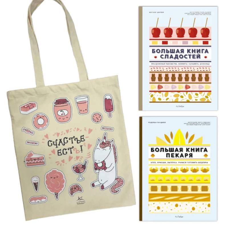 Комплект из яркого шоппера и двух действительно больших книг про сладости и выпечку. Известные повара Франции, Мелани Дюпюи и Родольф Ландмен, и научный редактор Анн Казор создали книги, которые порадуют профессионалов и помогут улучшить кулинарные навыки любителям! Потрясающая коллекция рецептов самой соблазнительной выпечки и кондитерских изделий с подробными пошаговыми инструкциями и фотографиями. Наглядная инфографика и иллюстрированный глоссарий помогут овладеть основными пекарскими и кондитерскими приемами и техниками, разобраться в продуктах, кухонной утвари и инвентаре. Рецепты, советы и идеи, изложенные в книге, помогут добиться отличных результатов в изготовлении сладких десертов, удивить ваших гостей и близких, а также реализовать ваши творческие идеи в этой интересной сфере кулинарии. Комплект книг с шопером станет отличным подарком для мамы, жены, сестры или подруги.