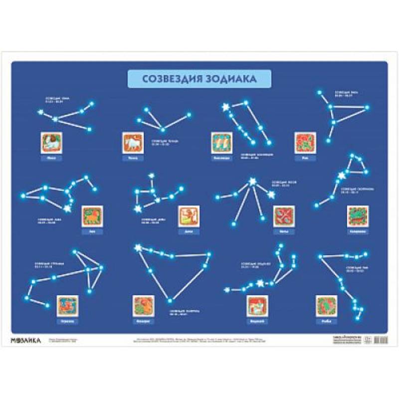 Обучающий плакат Мозаика-Синтез Созвездия зодиака. 440х590 мм