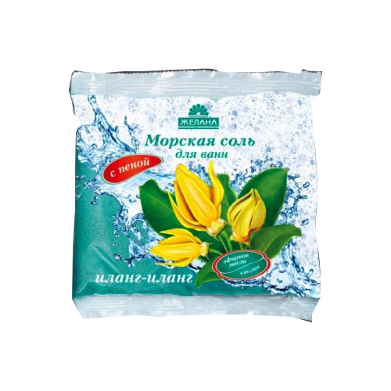 Морская соль для ванн с пеной. Эфирное масло иланг-иланг.