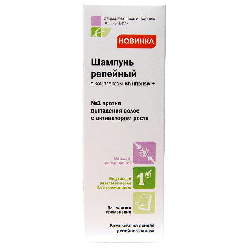 Шампунь репейный активно питает корни волос, усиливает рост, защищает волосаной стержень от повреждения. Очищает кожу головы и подготавливает к максимальному восприятию лечебных средств. После применения Шампуня волосы приобретают эластичность, мягкость, блеск и сохраняют объем. Подходит для частого использования.[  ]механизм действия: блокирует действие ферментов, вызывающих преждевременное выпадение волос; усиливает деятельность волосяной луковицы; активизирует и продлевает фазу роста волос; стимулирует клеточное обновление и синтез кератина; стимулирует кровоснабжение и питание корней волос; укрепляет ткани, окружающие корень волоса; снимает раздражение, зуд, воспаление кожи головы; регулирует секрецию сальных желез.[  ]Способ применения: равномерно нанести Шампунь на влажные волосы, вспенить массирующими движениями, смыть водой. При необходимости процедуру повторить. После применения Шампуня нанести Бальзам-маску репейную. Шампунь может применяться самостоятельно.[  ] h intensiv+ - сбалансированный комплекс репейного масла, фитоэкстрактов,аминокислот, витаминов.