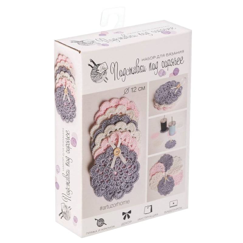 —Ажурные салфеточки, набор для вязания, 11x16x4 см