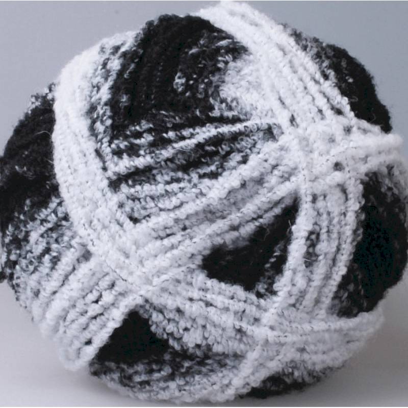 Вес мотка этой пряжи 360 г, что достаточно для вывязывания одного изделия. Рисунок сложится сам, т.к. «умная  машина» распределяет цвета в четкой  последовательности и размерности- Вам будет представлен «раппорт». Пряжа мягкая, теплая. «Завиток» прочно закреплен нитью к стержню пряжи.