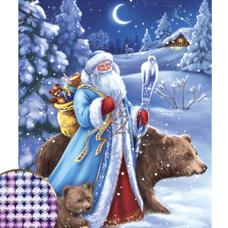 Алмазная вышивка с частичным заполнением 'Дед Мороз' 30x40 см, холст, емкость