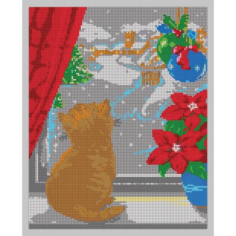 —'Котёнок в окне' 24x30см набор для вышивания чешским бисером 'Вышивочка' ВЛ-110П