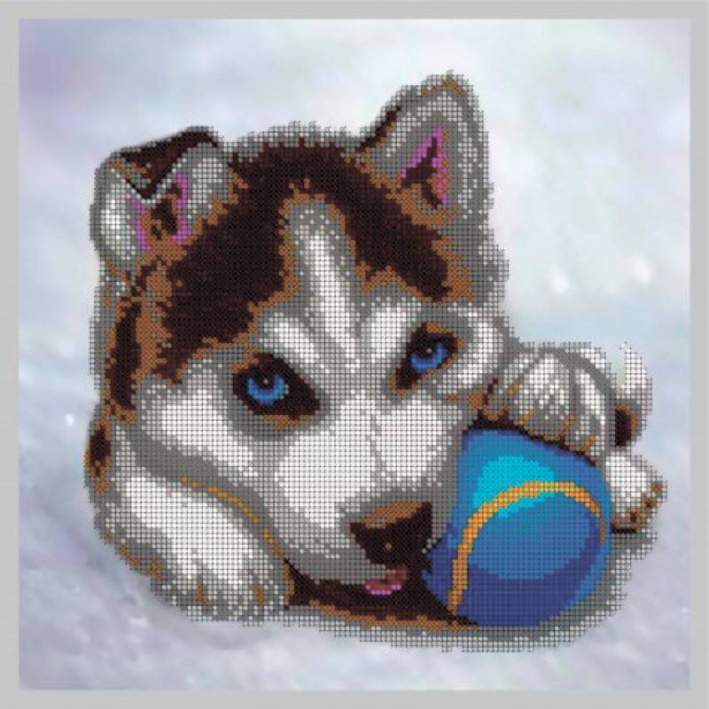 —'Щеночек хаски' 27x27см набор на атласе для вышивания чешским бисером 'Вышивочка' в коробке ВЛ-067