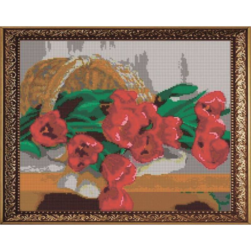 —'Тюльпаны' 38х30см набор на атласе для вышивания чешским бисером 'Вышивочка' ВЛ-008П