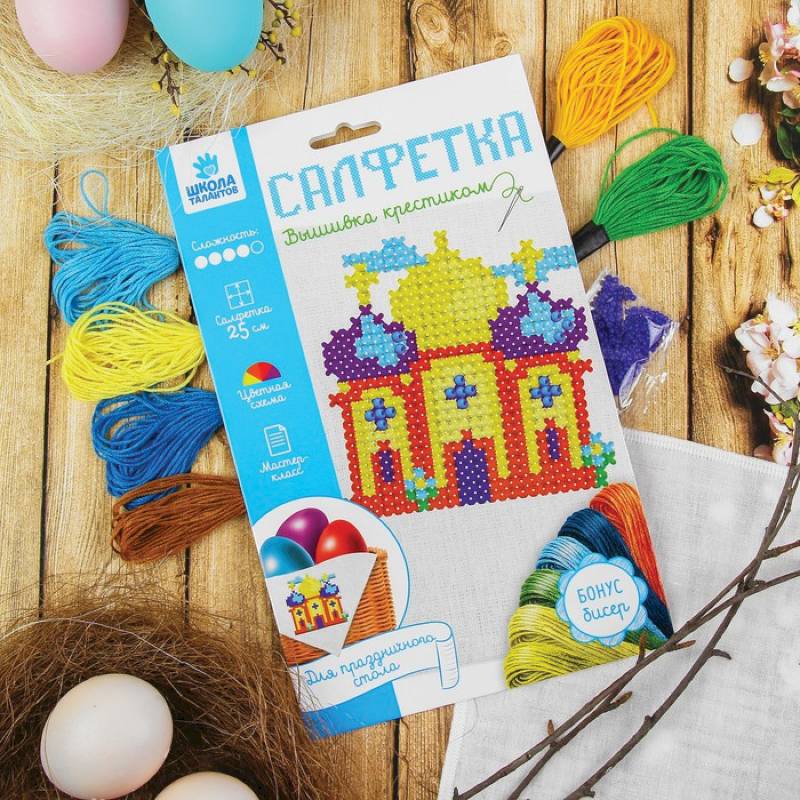 Вышивка на салфетке 'Пасхальный кулич'