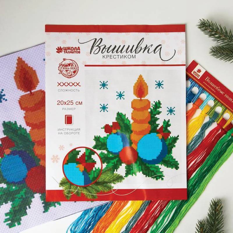 —Вышивка крестиком «Рождественская свеча», 25x20 см