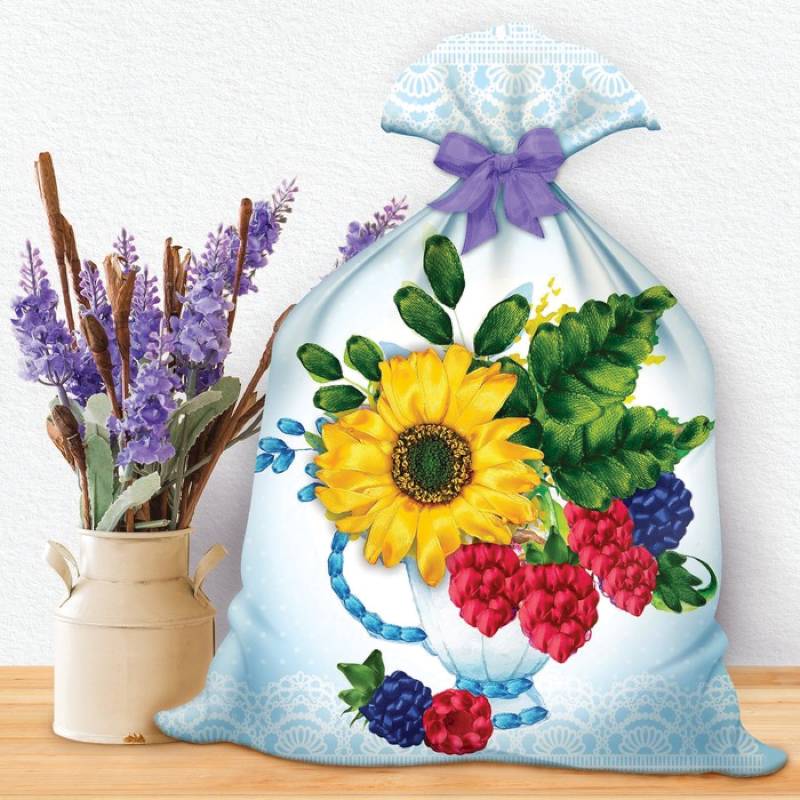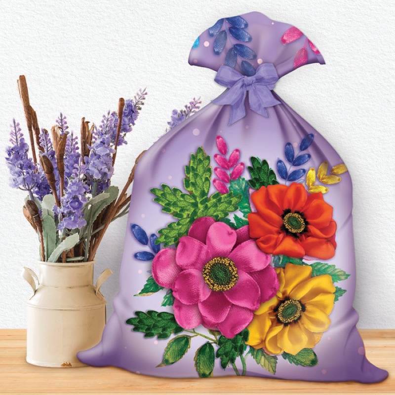 Вышивка лентами на мешочке 'Цветы', 3...