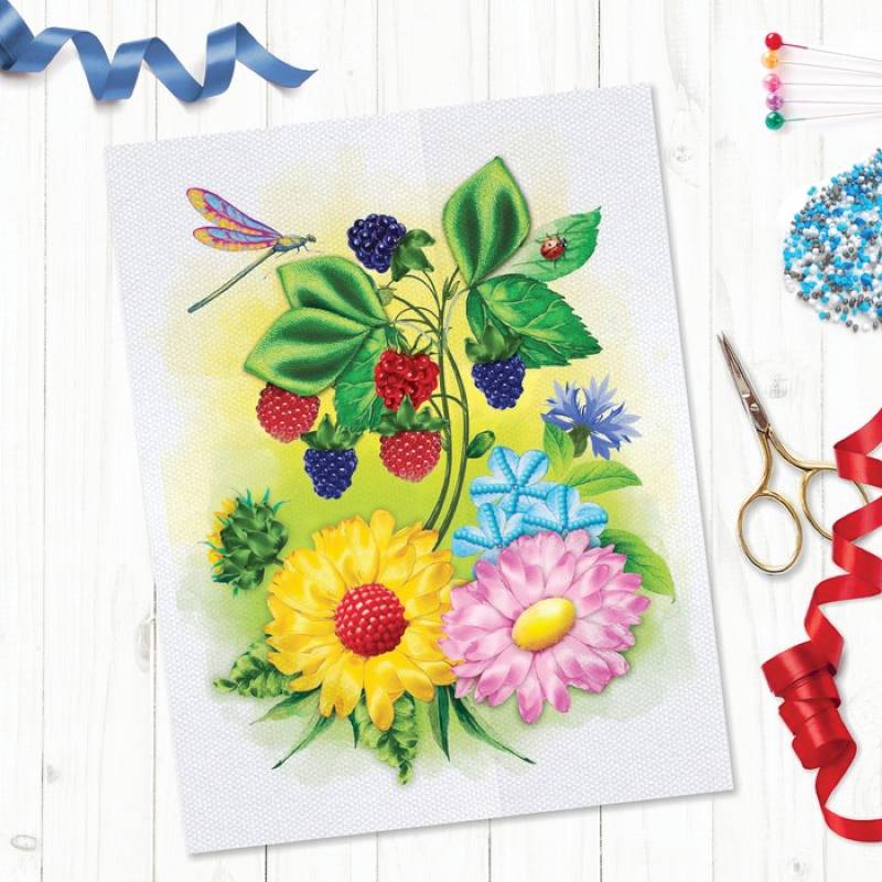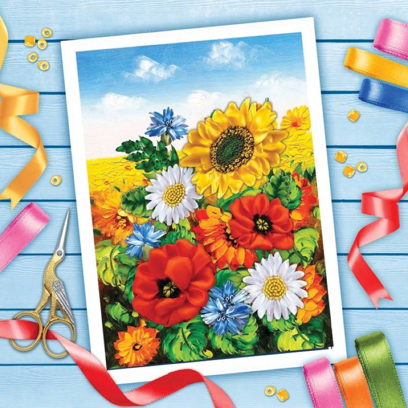 Вышивка лентами 'Поле в цвету', 25x35 см