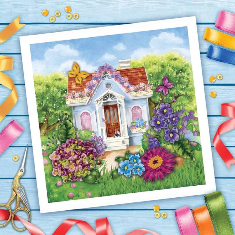 Вышивка лентами 'Домик', 35x35 см