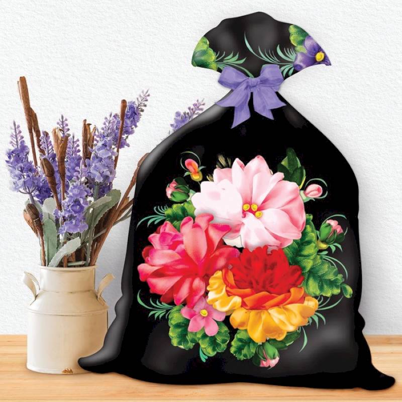 Вышивка лентами на мешочке 'Жостово',...