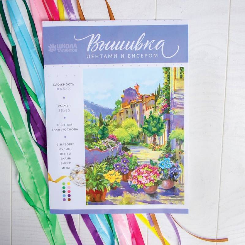 Технология включает в себя более 15 основных видов стежка, благодаря комбинациям которых воплощаются в жизнь самые разные мотивы. Схема показывает процесс нанесения разметки лент на ткани, а также основные техники вышивки до оформления готовой работы. Сочетание лент и бисера придаёт шедевру ещё больший объём и выразительность. Трудно устоять перед искушением создать такую удивительную вышивку самостоятельно.